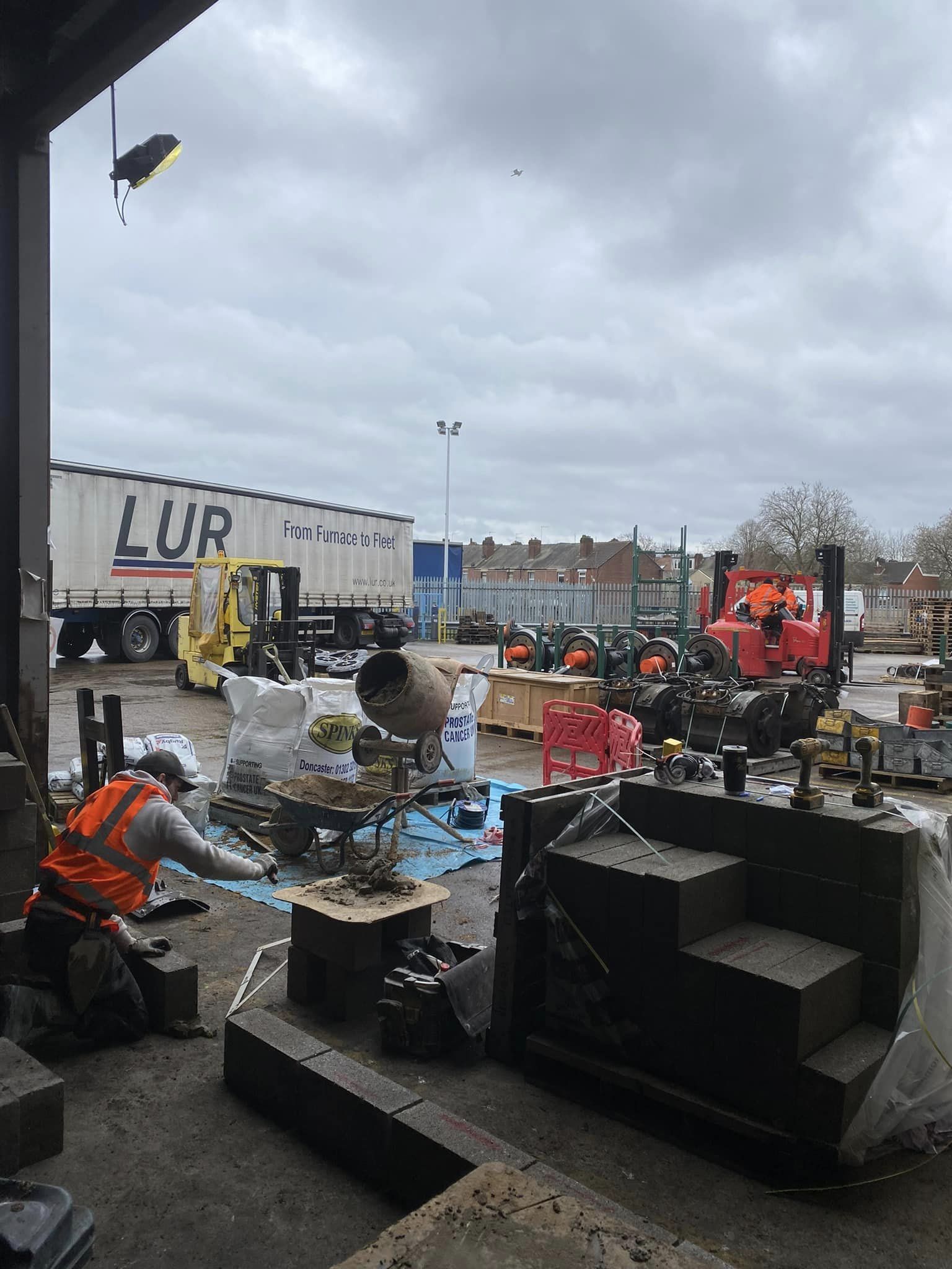 Here is one of our recent commercial jobs at Lucchini Unipart Rail Ltd, where we built a toxic waste prevention wall in order to prevent toxic waste spillages.