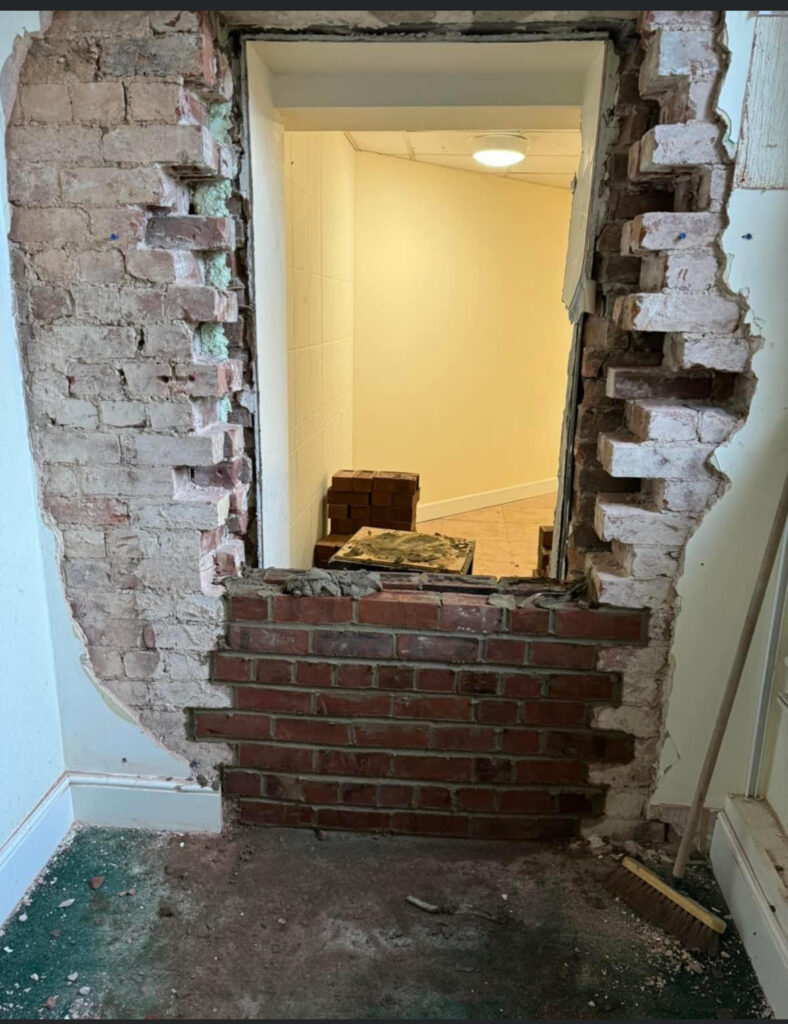Due to this being a listed building, we had to build this in English bond and use matching reclaimed bricks. We also plastered over the bricks ready for it to be decorated and a new office to be installed.